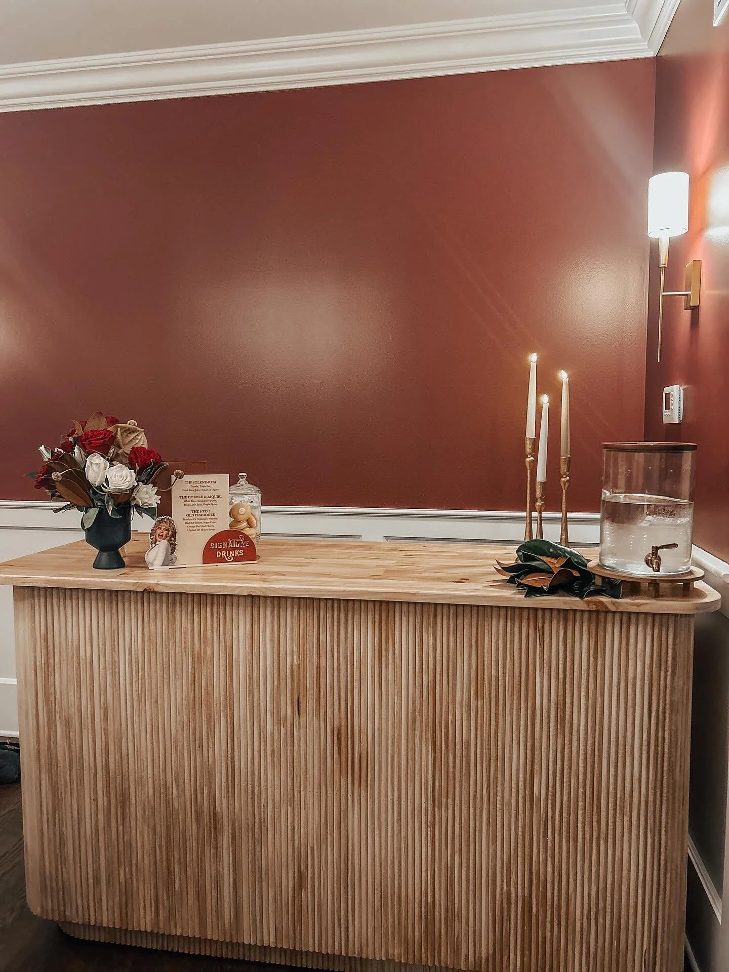 Honey is the perfect additions to any gathering ! With its unique wood tone and details , it will surely be a show stopper .